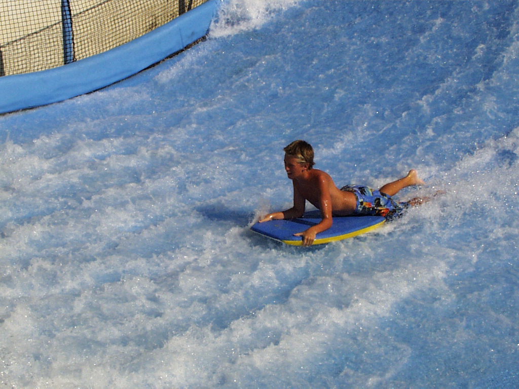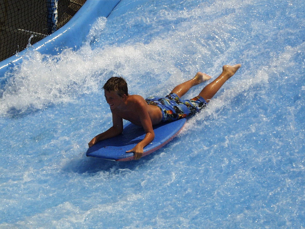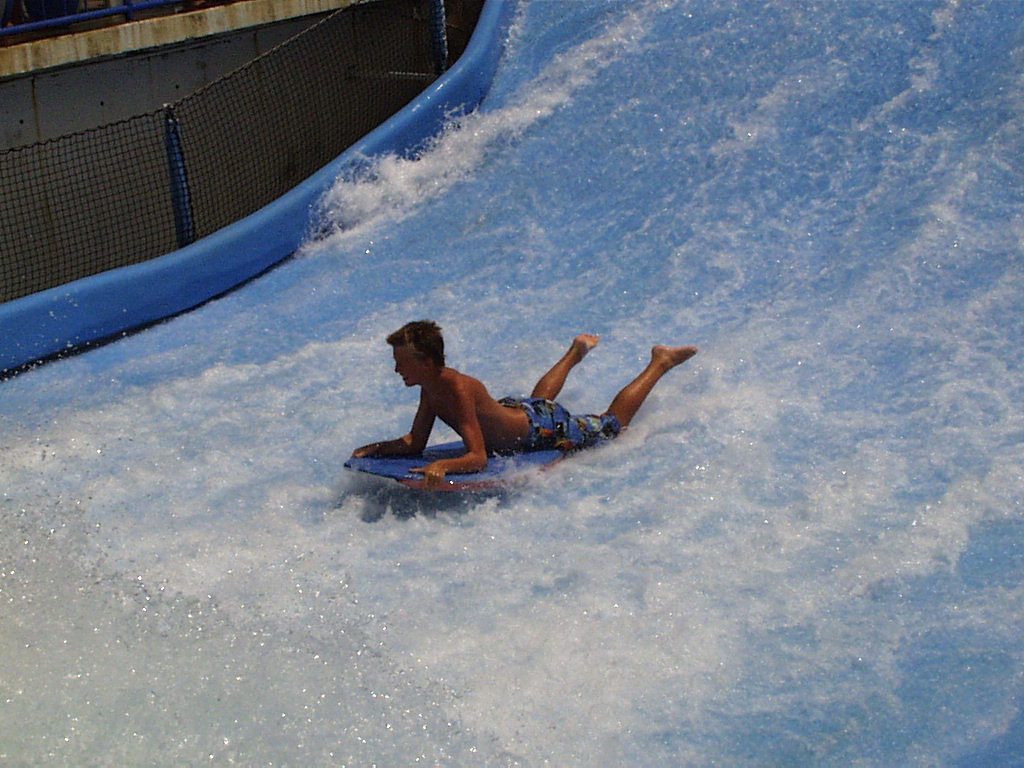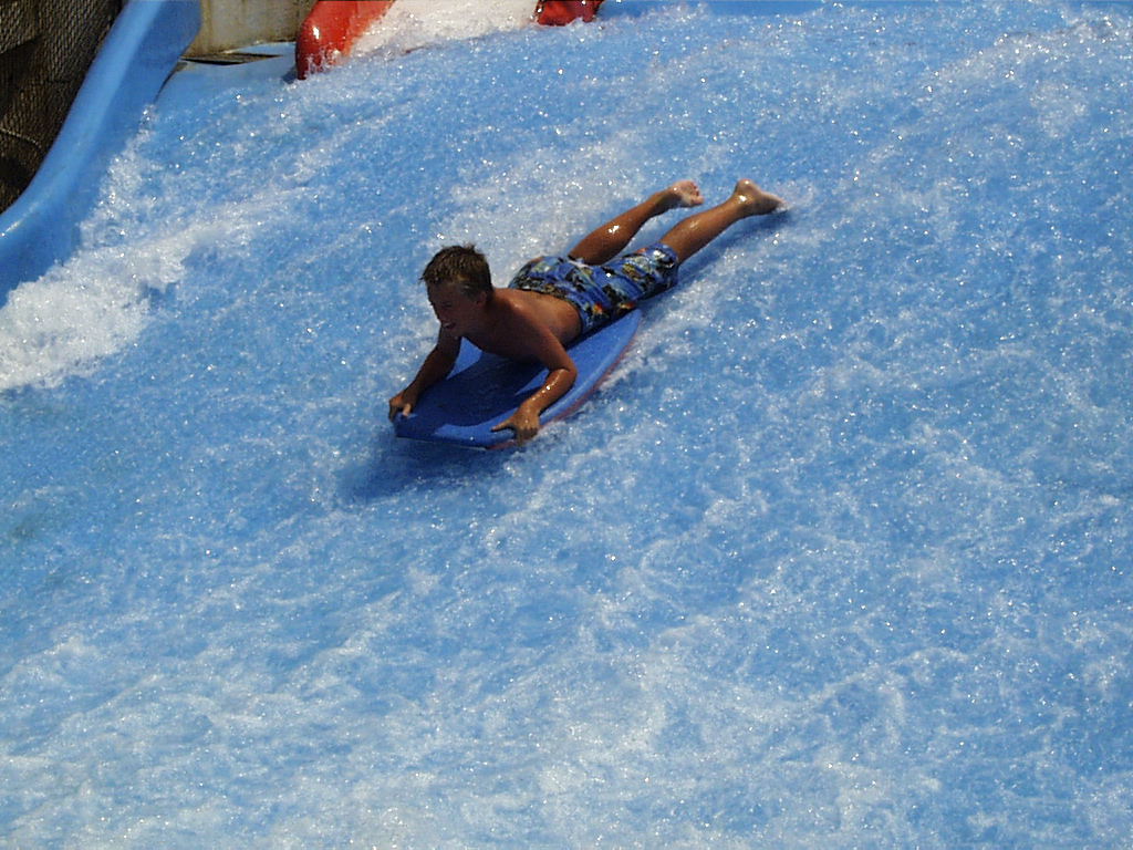 Having been to the amazing water theme parks of Disney's Typhoon Lagoon and Blizzard Beach, we decided to check out another, smaller water attraction at Kissimmee. There was a good offer on in August for Water Mania; two days entry for $13.98. Although the park did not have as many flumes, pools or water slides, it is a cheap and fun place to spend an afternoon. The bodyboarding 'Wipe Out' really tests your skills of strength, coordination and ability to perform infront of an audience; arms and legs flying everywhere, face being sprayed with water and sometimes, board shorts revealing more than they should !