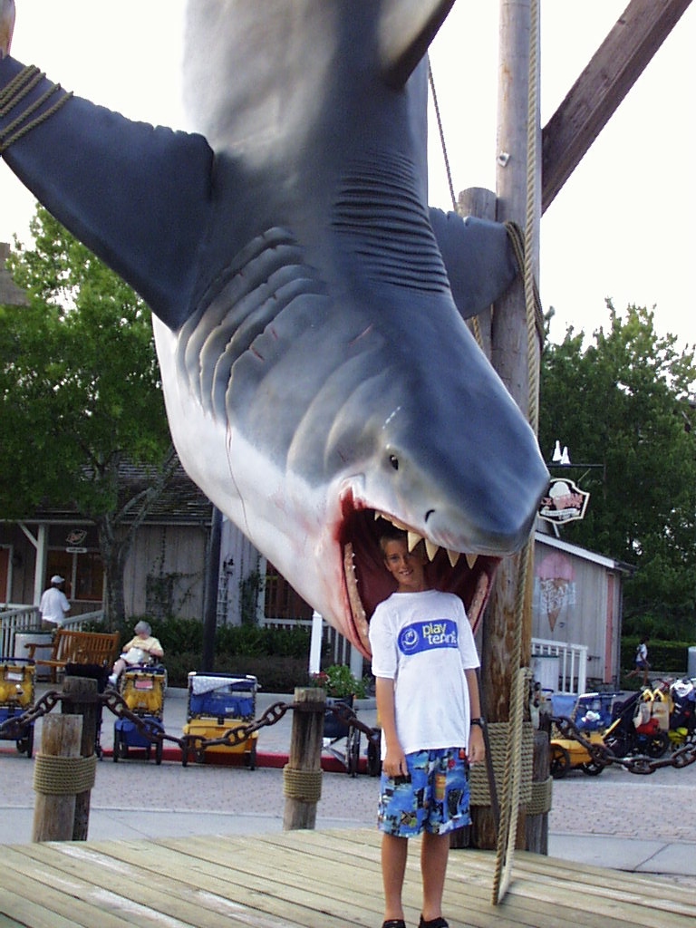 Inbetween the two theme parks is Universal CityWalk, a collection of themed restaurants (Hard Rock, Nascar, Motown, Margaritaville, Bob Marley and many more), nightclubs with live music, shops and a huge multiplex movie theatre. Each cinema has wonderfully comfy seats, with high backs which rock you gently back and forth! Ask for popcorn and you receive a large shopping bag of the stuff, ask for a beer, and if you can prove you are over twenty-one, you must wear a very fetching pink wristband! We saw X-Men, (terrific super hero action), Space Cowboys, (Clint Eastwood, Tommy Lee Jones, James Garner, Donald Sutherland and William Devane; a story of amazing ageing astronauts; a wonderful film), Pokemon 2000 (hmmm!), and Godzilla 2000 ( an over the top monster trashing downtown Japan).
